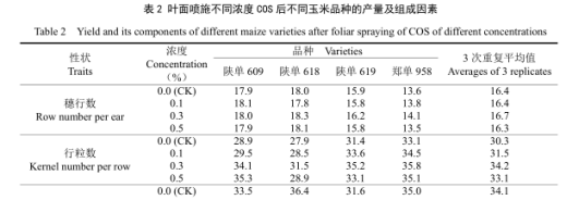 研究人員將殼寡糖稀釋成0.1%、0.3%、0.5%的不同濃度后,在五葉期、十葉期和十五葉期分 3 次葉面噴施,與清水對照組比較,研究殼寡糖對不同玉米雜交種抗旱相關生理指標、產量及其構成因素的影響。具體研究結果如下: